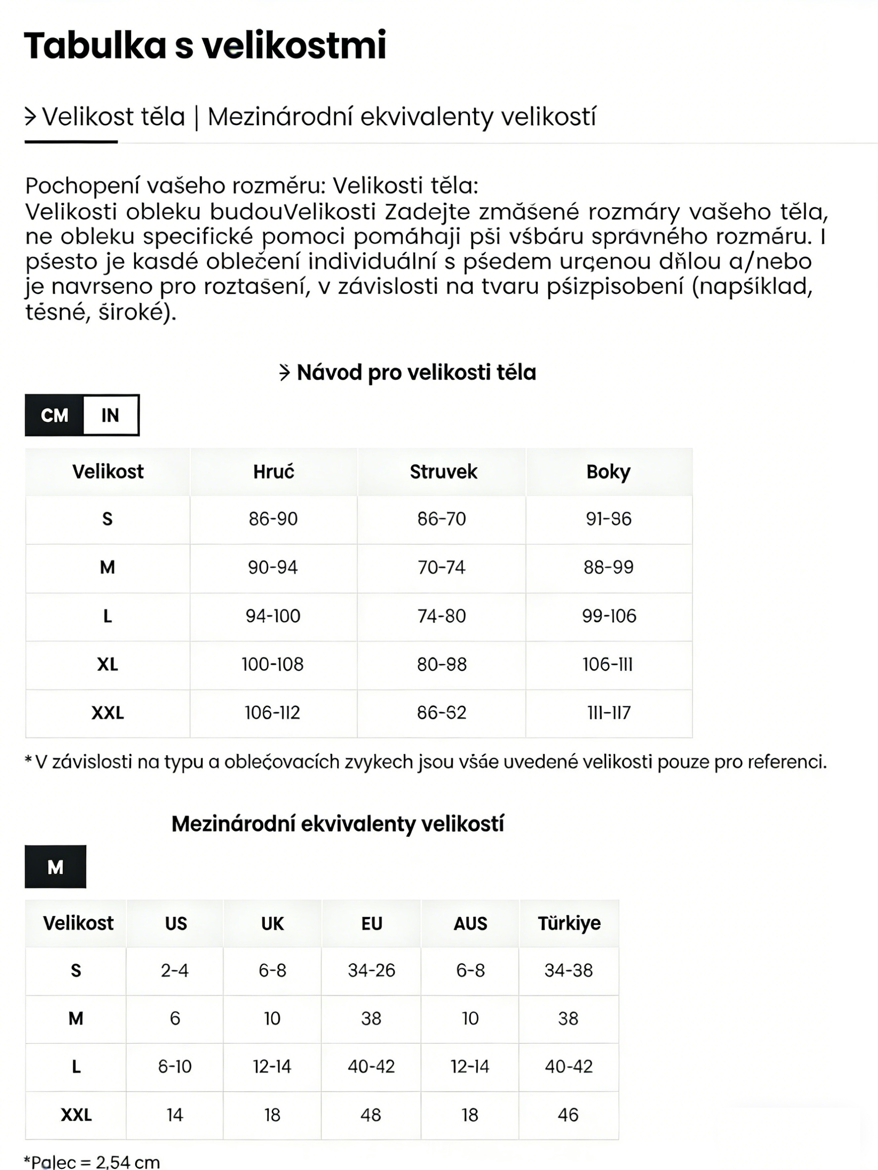 6. Dostupné velikosti: XS, S, M, L, XL, 2XL